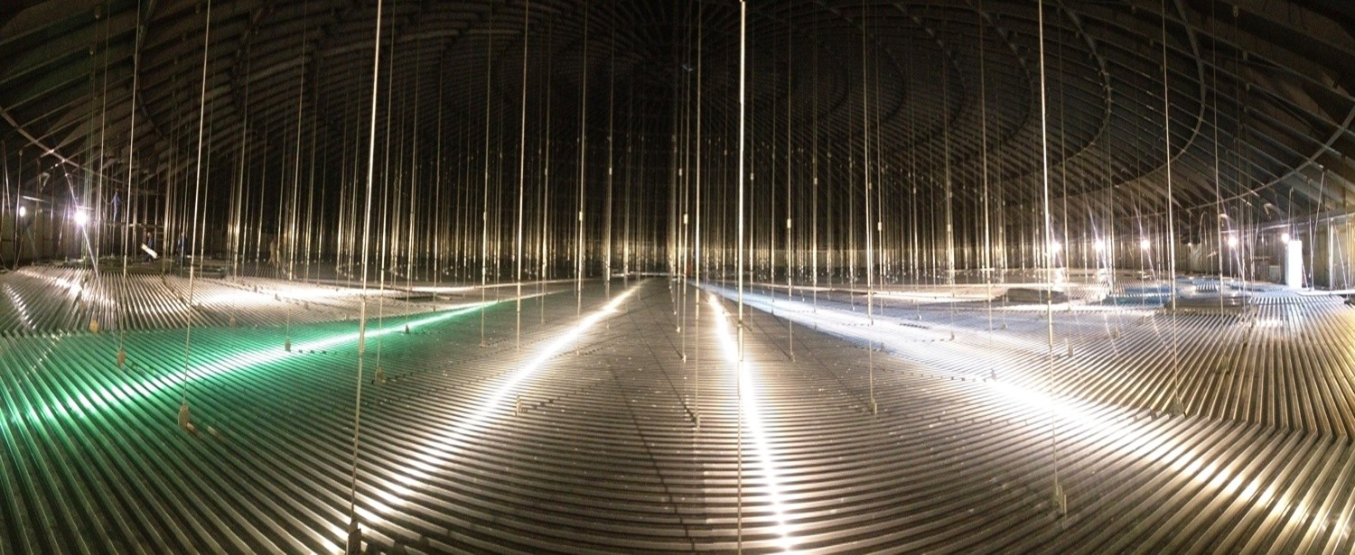 鋁吊頂系統(tǒng)桁架和頂面采用優(yōu)質(zhì)鋁材,吊桿采用耐低溫不銹鋼,結(jié)構(gòu)單元經(jīng)工廠壓制焊接 成型,現(xiàn)場(chǎng)只需進(jìn)行拼裝固定。系統(tǒng)結(jié)構(gòu)穩(wěn)定,頂面平整,質(zhì)量輕,強(qiáng)度高。能有效改善拱 頂結(jié)構(gòu)的受力狀況,避免了罐內(nèi)焊接,改善了工作環(huán)境,大大縮短了現(xiàn)場(chǎng)安裝周期。